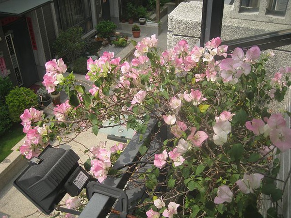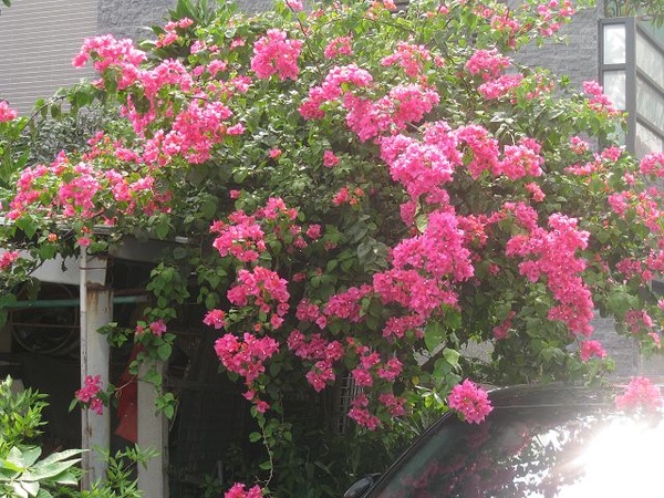 (picture:piano最愛的花之一:九重葛;分別開在"綠葉方舟" ~~ "路邊"~~"piano家2F陽台")