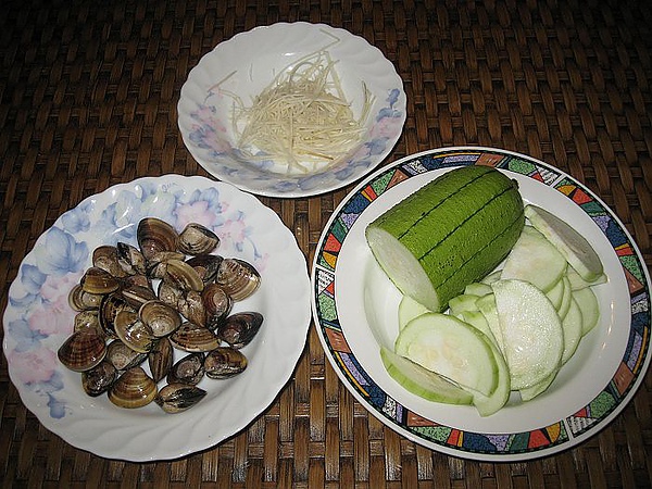 材料:薑絲 蒜頭 蛤蜊 絲瓜