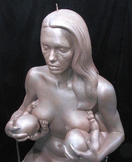 (安吉麗娜裸體雕塑展 雙胞胎被餵奶盡顯母愛)