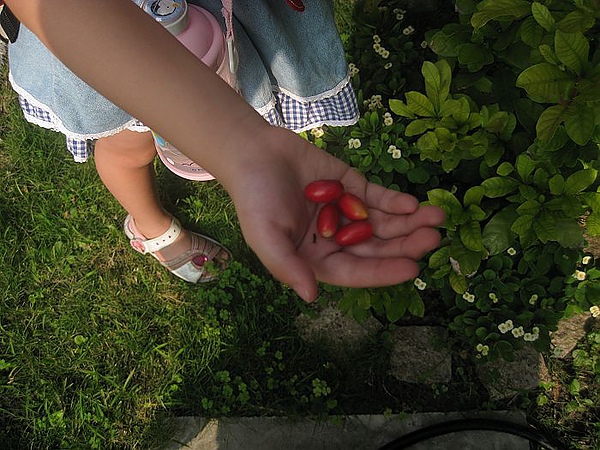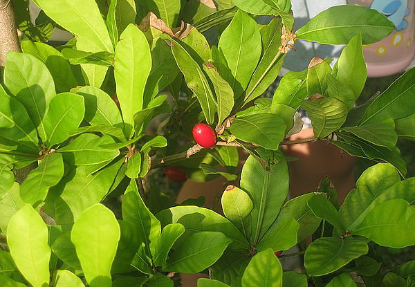 早上出門前yoyo/momo發現種在門口的神秘果成熟啦
