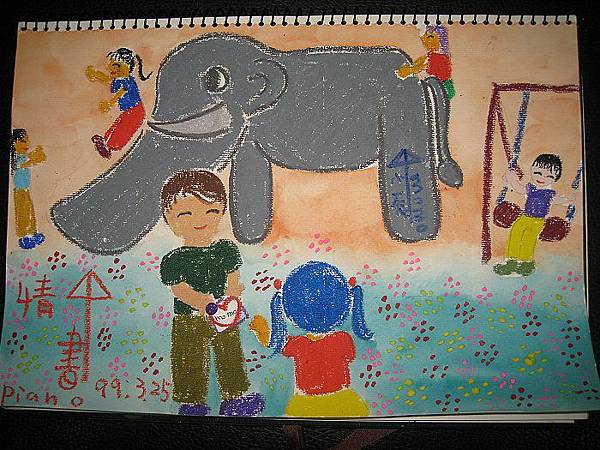 還有大象腳有仿小宸畫的塗鴉ㄛ(一支小傘下寫了momo+小宸的名字~他還各畫了一個小娃娃呢~很用心ㄛ)