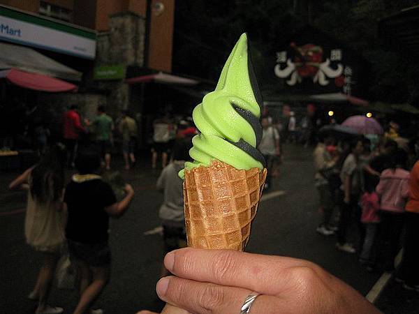 " 冰淇淋~~是"抹茶+竹碳"口味 很有妖怪村的Fu~