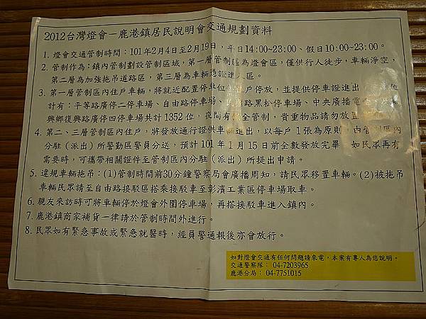 踩街路線:於玉珍齋前集結,自南燈區(文武廟)沿中山路踩街至北燈區(鹿港鎮立體育場)
