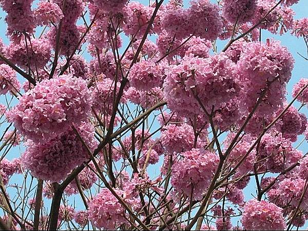 yomo學校邊有種洋紅風鈴木 滿滿一樹的粉紅花 春天真的來囉