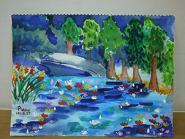 (畫:101-4 菁芳園.田尾~美麗的池塘.落羽松)