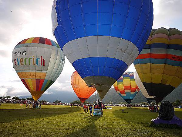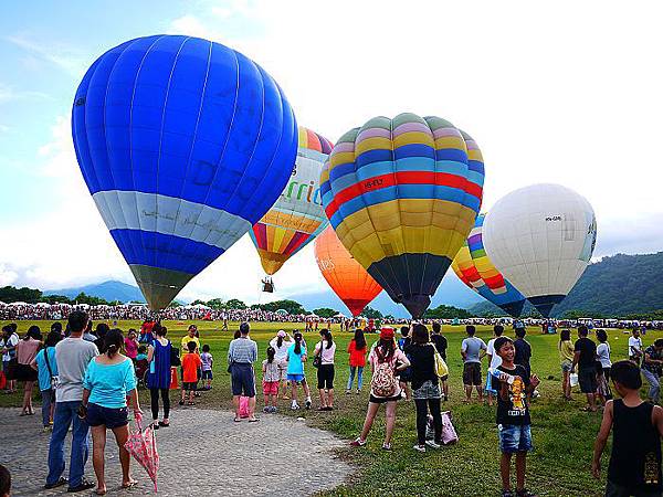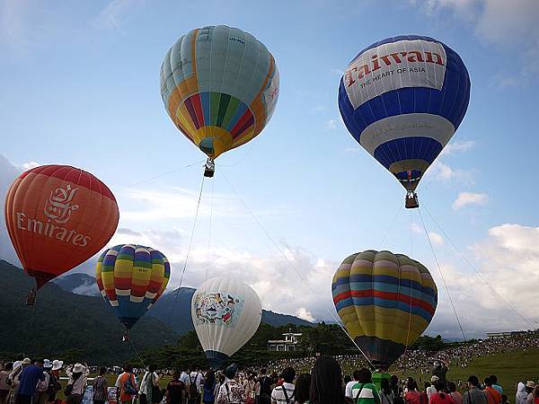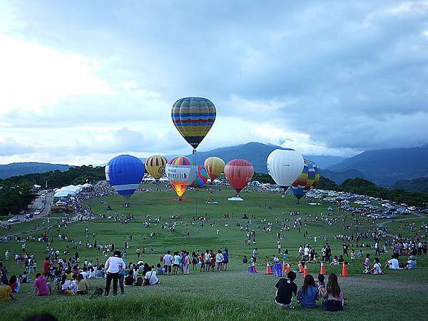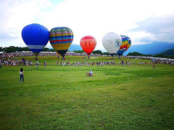 坐草地上欣賞9顆熱氣球緩緩升空 就超.級.棒.囉!!