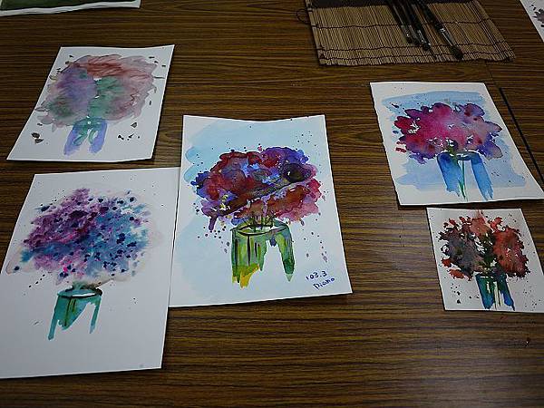 今天嘗試水彩暈染(所有東西 副班長大方提供)