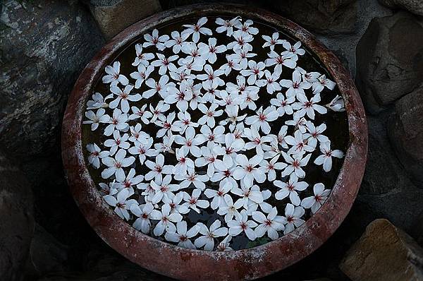 回家後,我們的油桐花收穫很多哩!不但鋪滿小水池,還有浴室的小水桶,還可以壓花呢!