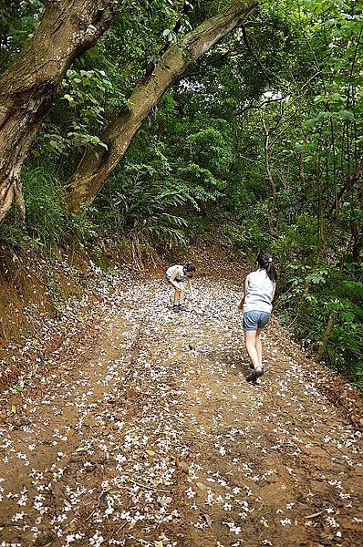 每年的桐花季,母女的小樂趣就是上山撿油桐花(媽媽發現的小秘徑),