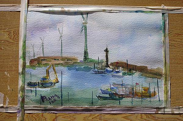 鹿港崙尾漁港寫生.中午體感36度.爆熱.差不多快晒成人乾.